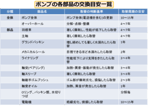 下記ではポンプ各部品の交換目安をご紹介致します。