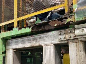 鋳型の洗浄設備の為、運転中には水気が常にある事から錆による腐食の進行もかなり進んでいる場所もあり、
