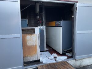 既設のエアドライヤー、バックアップ機を搬出することから作業は開始しました。