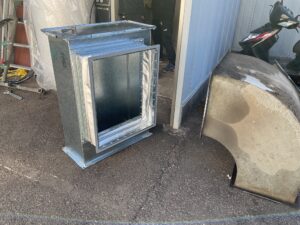 同時に排熱用のダクト製作も進めていきました。フォークリフトなどが無い為、